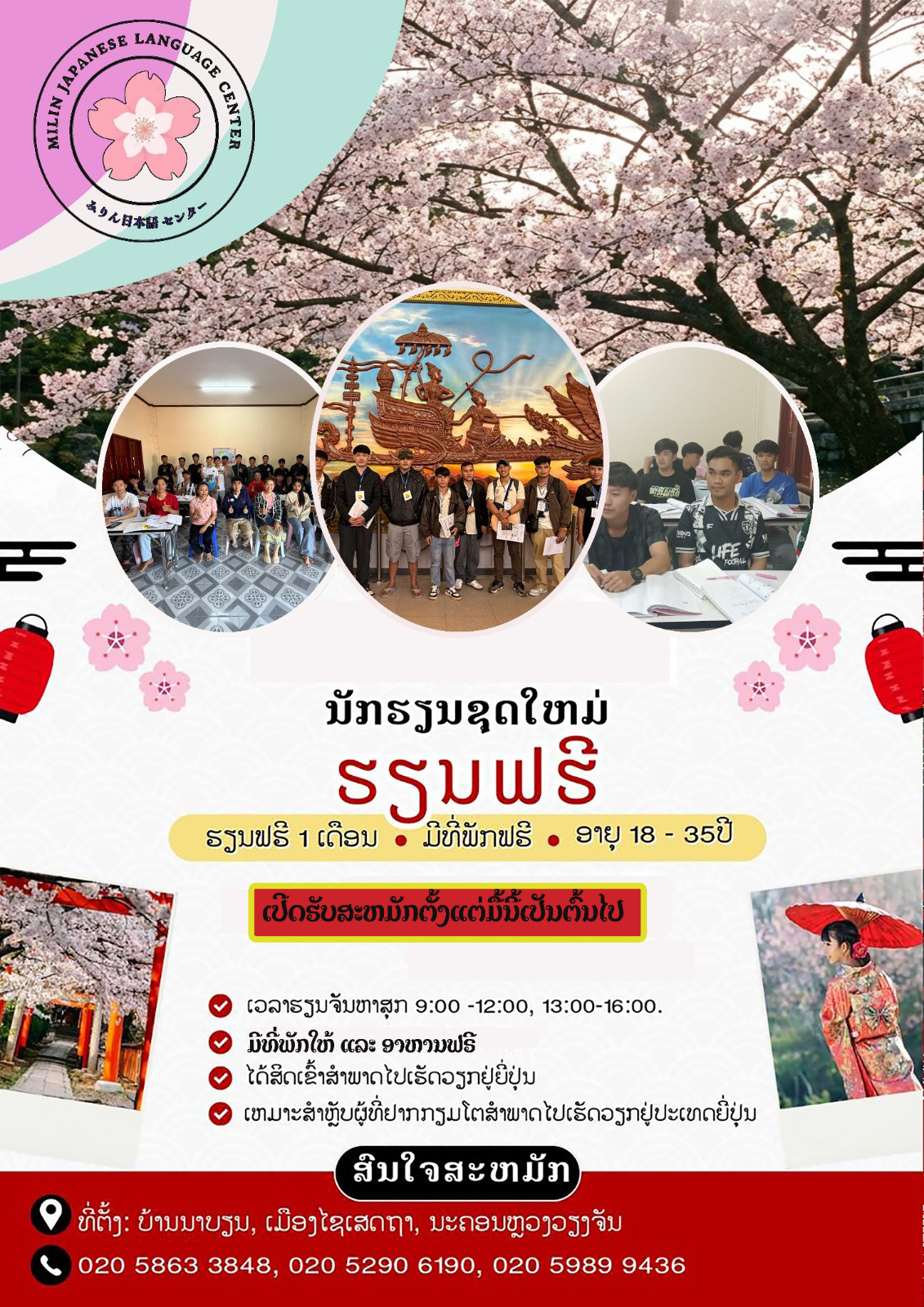 ລາຍຊື່ແຂວງປະເທດຍີ່ປຸ່ນ ຟອມສະໝັກ ສຳລັບຮຽນຕໍ່ (ພາສາຍີ່ປຸ່ນສຳລັບຮຽນຕໍ່) ຟອມສະໝັກ ສຳລັບເຮັດວຽກ (ພາສາຍີ່ປຸ່ນສຳລັບເຮັດວຽກ) Bridging Laos & Japan Through Language, Culture, and Professional Services ຮູບພາບການເຄື່ອນໄຫວຕ່າງໆ Empowering Lao Learners for a Global Future ພາສາ – ວັດທະນະທໍາ – ໂອກາດໃນອະນາຄົດ ພາບບັນຍາກາດການຮຽນພາສາຍີ່ປຸ່ນ / ວັດທະນະທໍາຍີ່ປຸ່ນ ພາບບັນຍາກາດພົບປະຄູ່ຮ່ວມງານ ເນື່ອງໃນໂອກາດສຳຄັນຕ່າງໆ ພາບບັນຍາກາດສົ່ງນັກສຶກສາ ກຽມເດີນທາງໄປປະເທດຍີ່ປຸ່ນ ສະຖິຕິຕ່າງໆໃນເວັບໄຊ໌ ຈໍານວນຜູ້ສະໝັກ 7 ຄົນ ຈຳນວນຜູ້ເຂົ້າຊົມເວັບໄຊ໌ 186 ຄັ້ງ ການບໍລິການ ສູນພາສາຍີ່ປຸ່ນ Milin Japanese Language Center ອ່ານຕື່ມ ທີ່ປຶກສາການລົງທຶນລະຫວ່າງປະເທດ ລາວ–ຍີ່ປຸ່ນ ອ່ານຕື່ມ